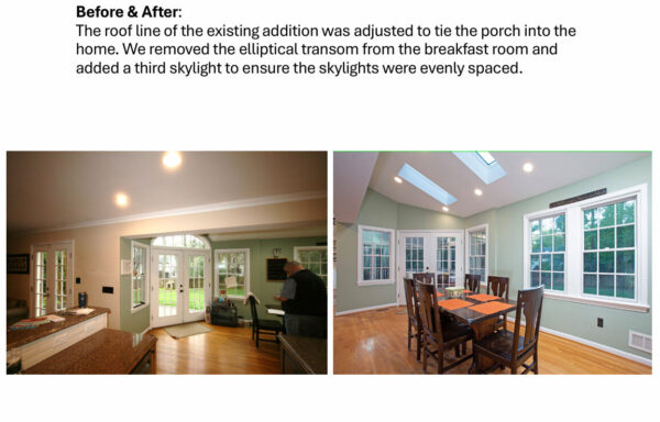 Modified the breakfast room roofline to accommodate the new porch