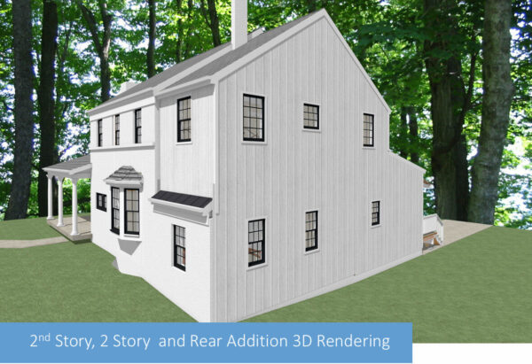 A two-story addition behind the garage, adding two bedrooms and two full bathrooms