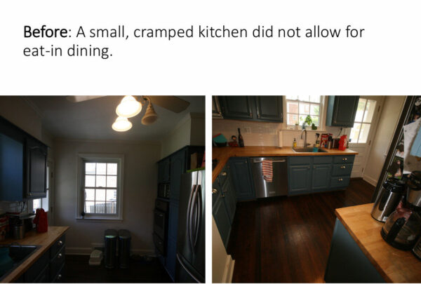 Expand and remodel the kitchen to allow for casual, everyday dining