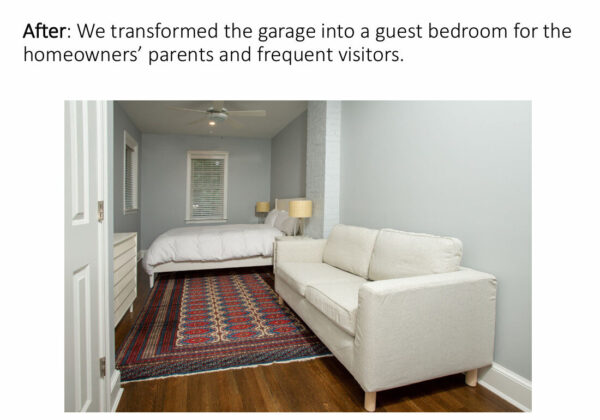 Convert the existing garage into a guest suite for visiting family